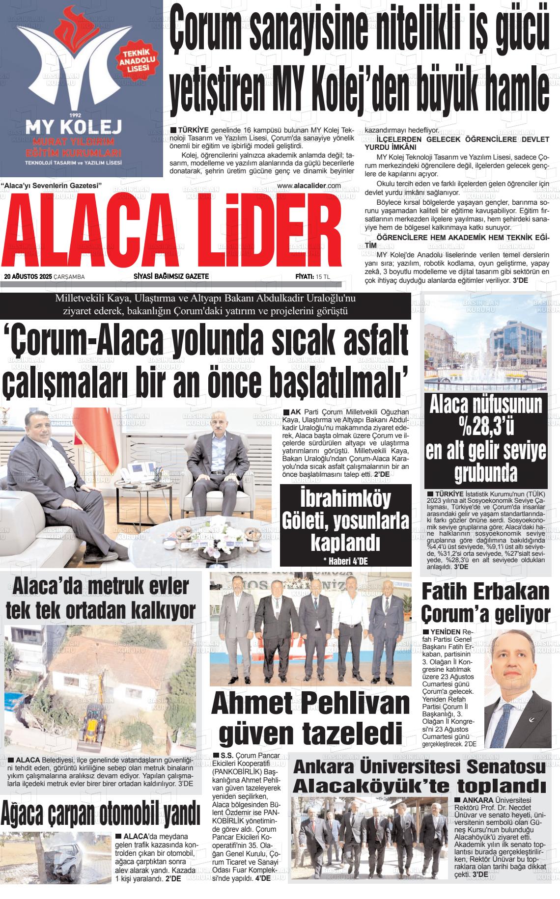 Çorum Yerel Gazeteleri 18 Mart 2026, Çarşamba Günü Manşeti