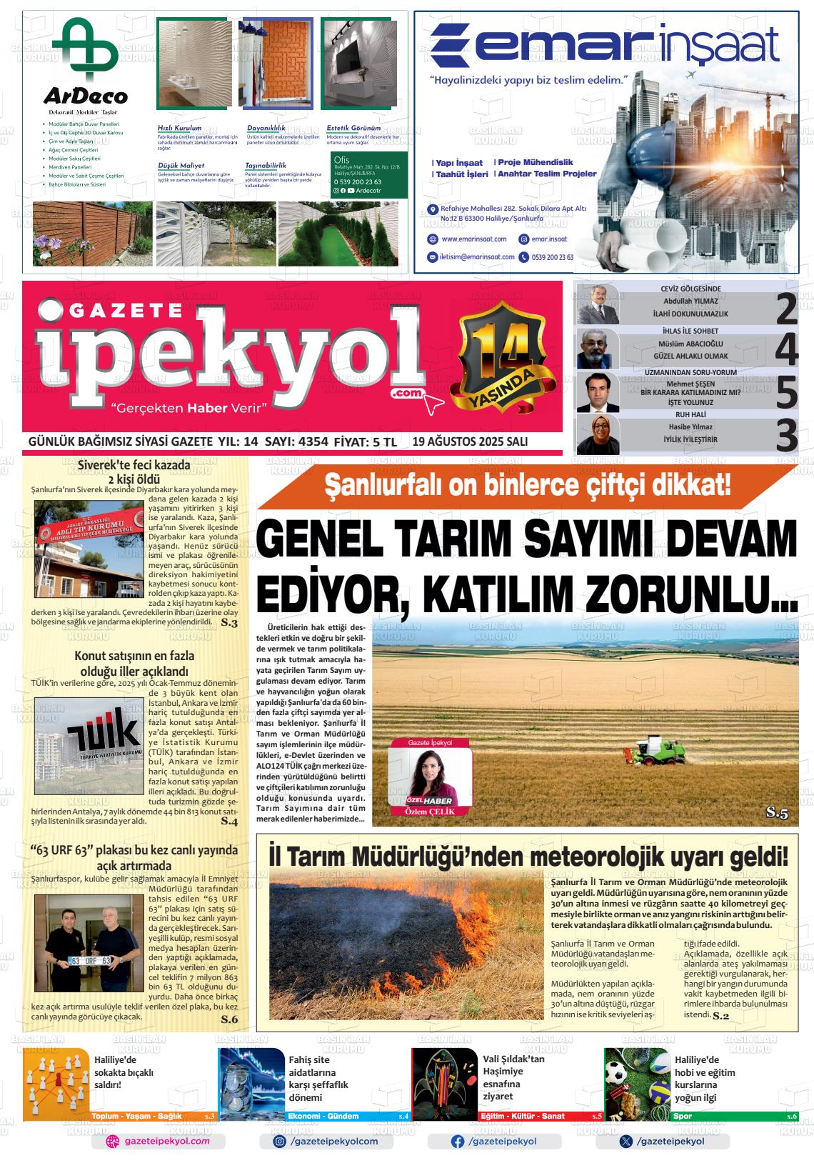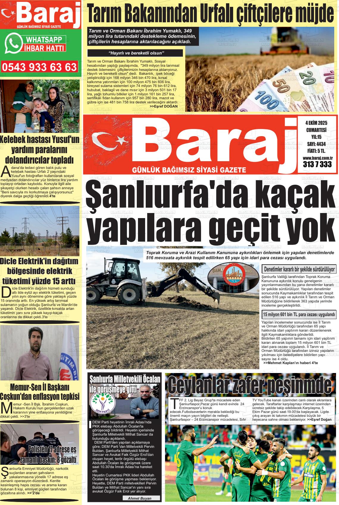 Şanlıurfa Yerel Gazeteleri 03 Mart 2026, Salı Günü Manşeti