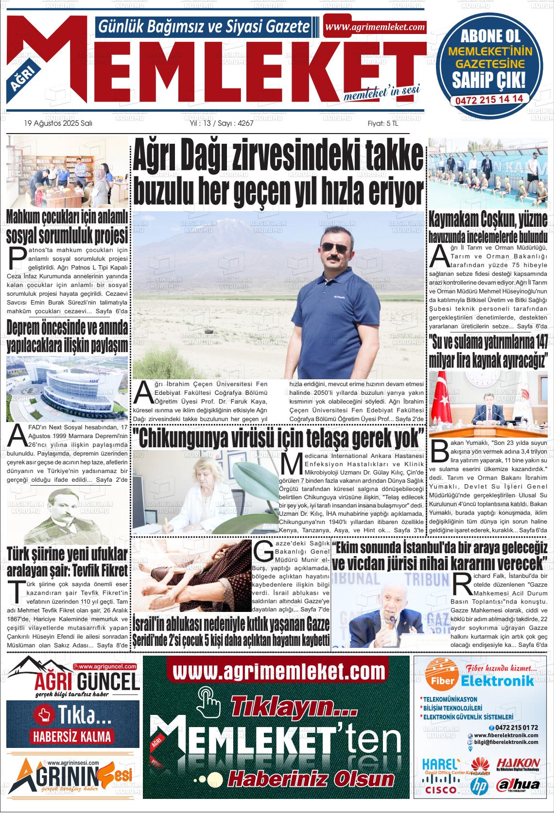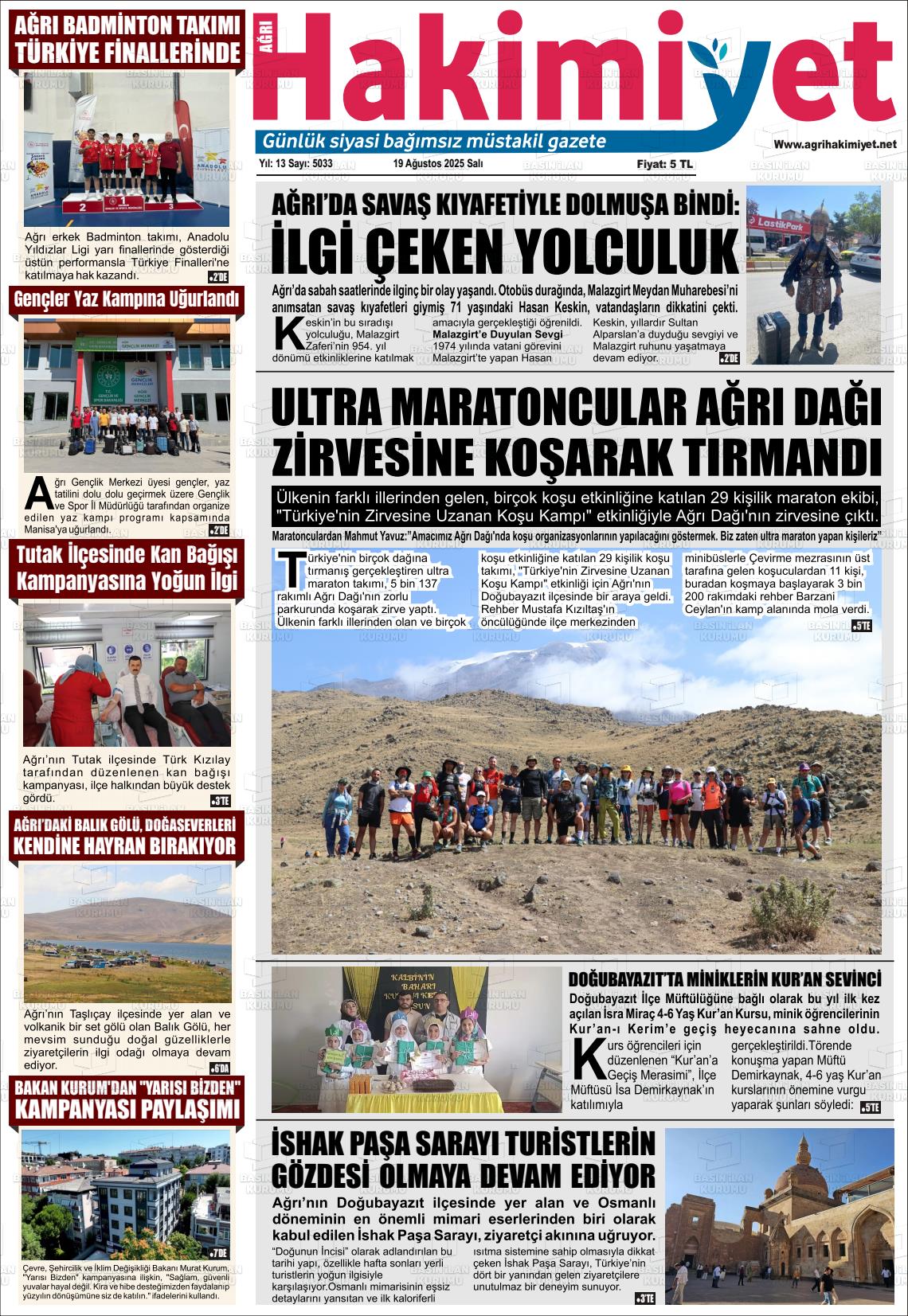 Ağrı Yerel Gazeteleri 10 Ocak 2026, Cumartesi Günü Manşeti