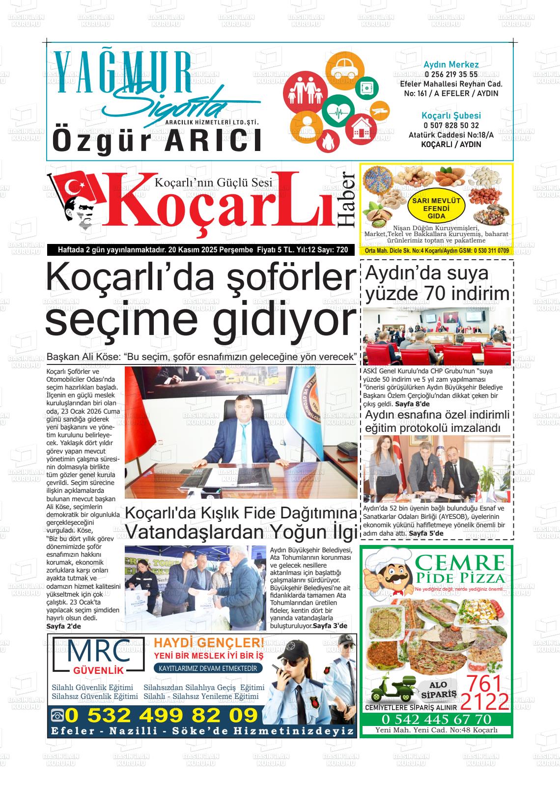 Aydın Yerel Gazeteleri 20 Kasım 2025, Perşembe Günü Manşeti