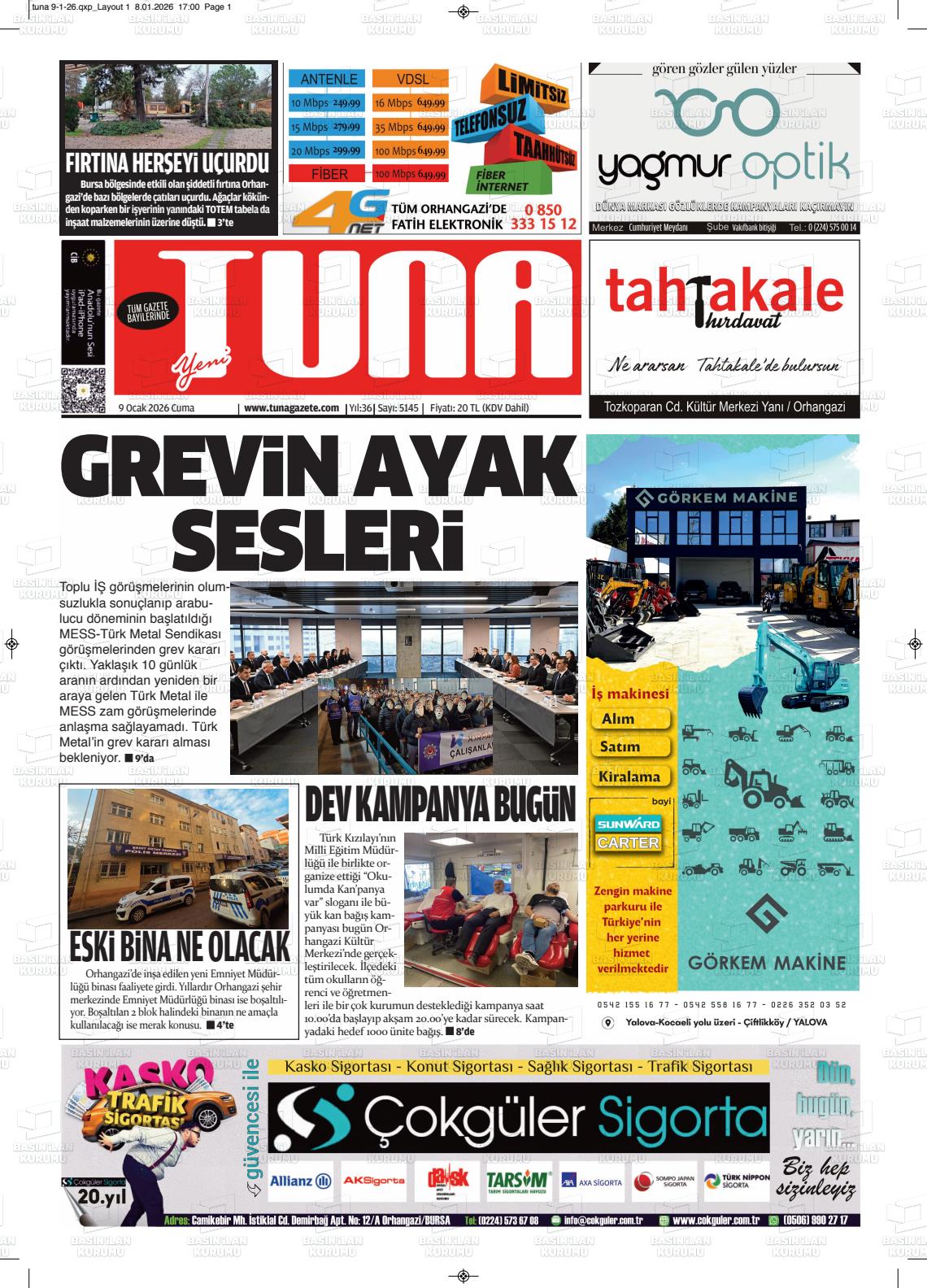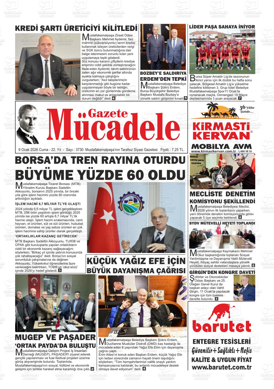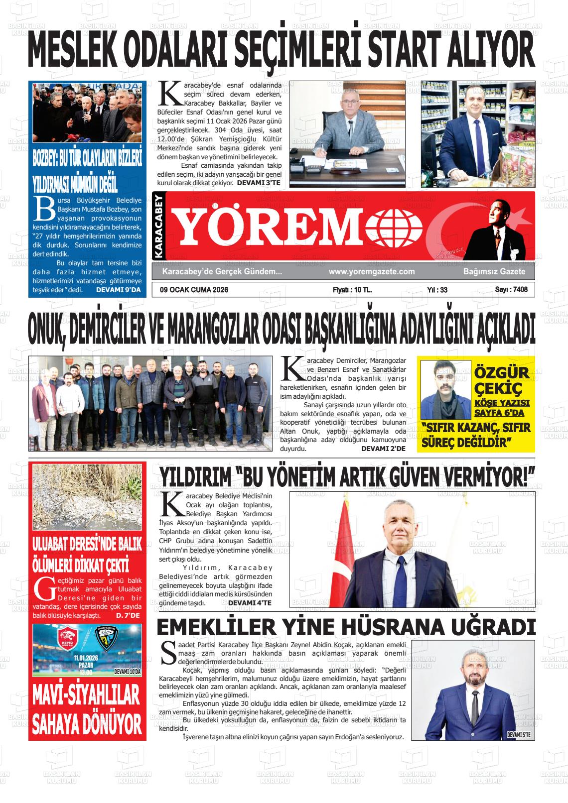Bursa Yerel Gazeteleri 10 Ocak 2026, Cumartesi Günü Manşeti