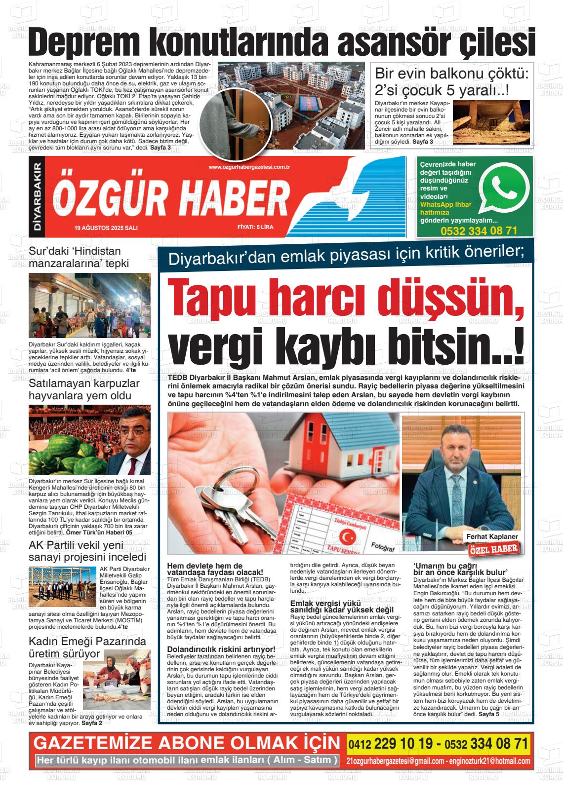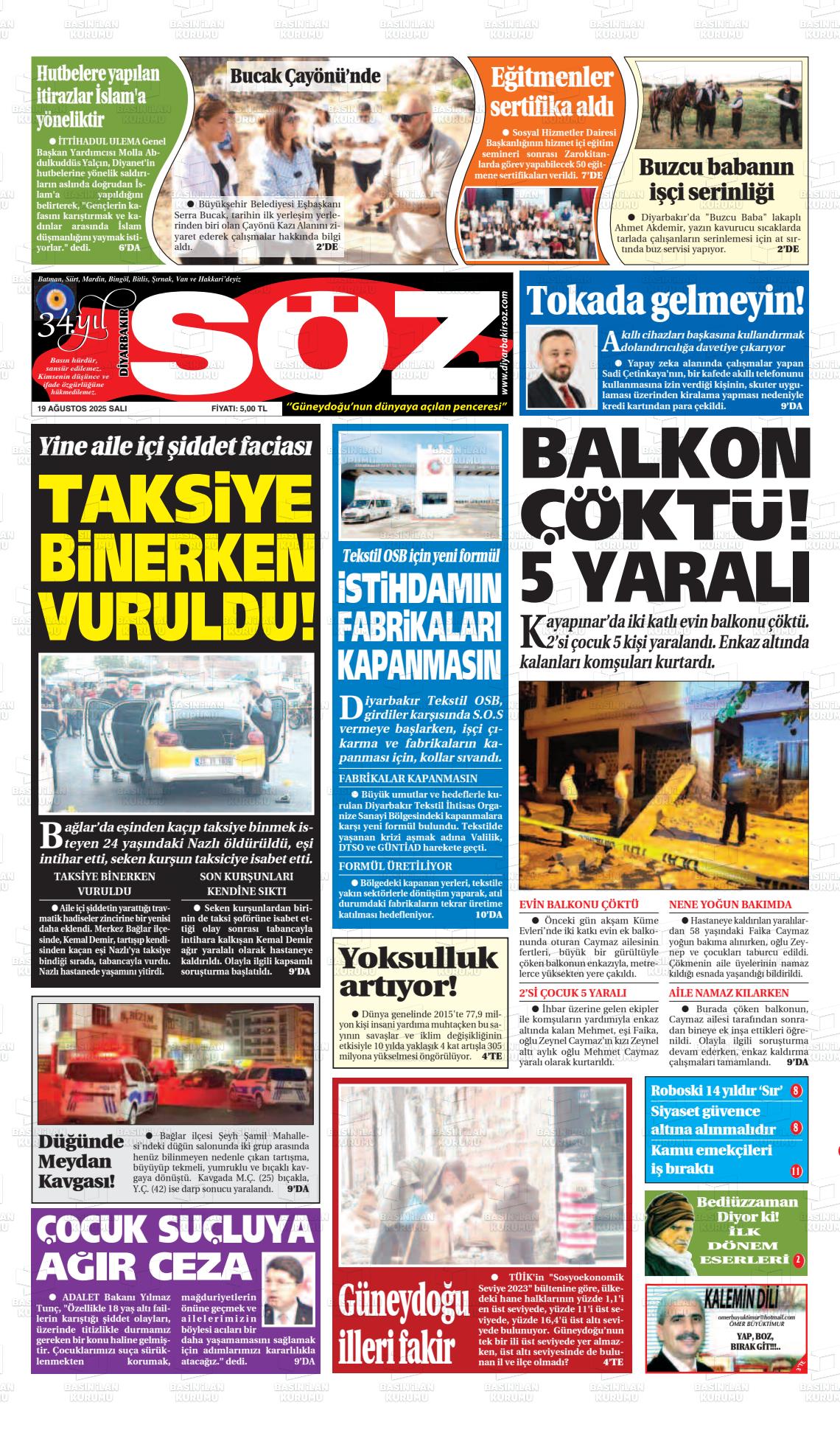 Dİyarbakır Yerel Gazeteleri 03 Mart 2026, Salı Günü Manşeti