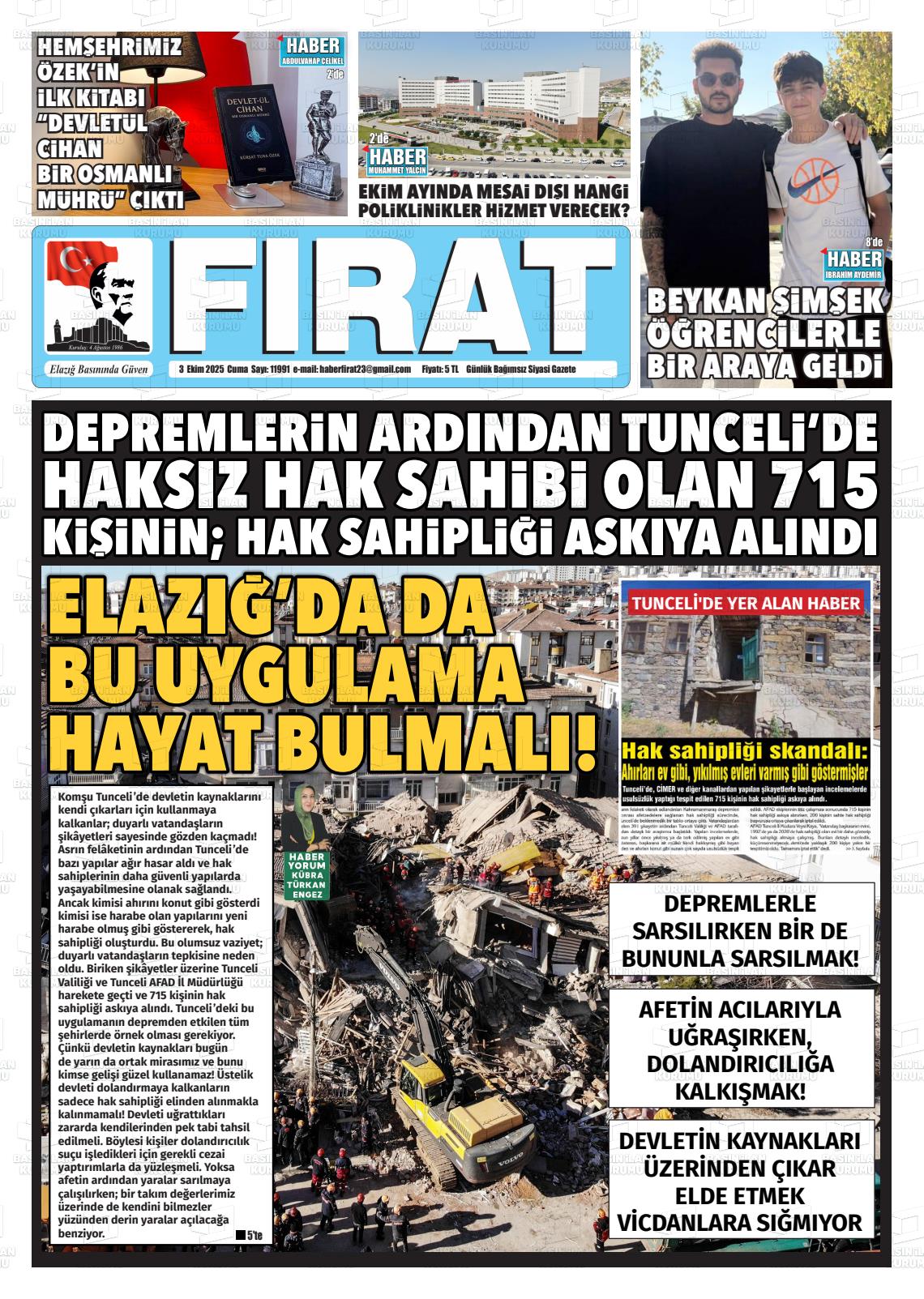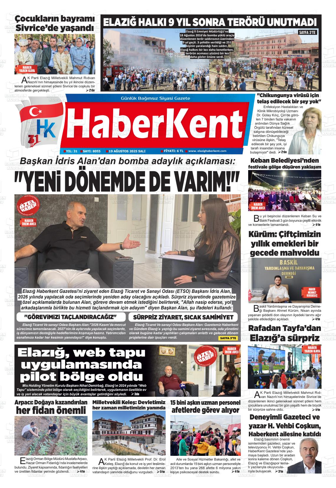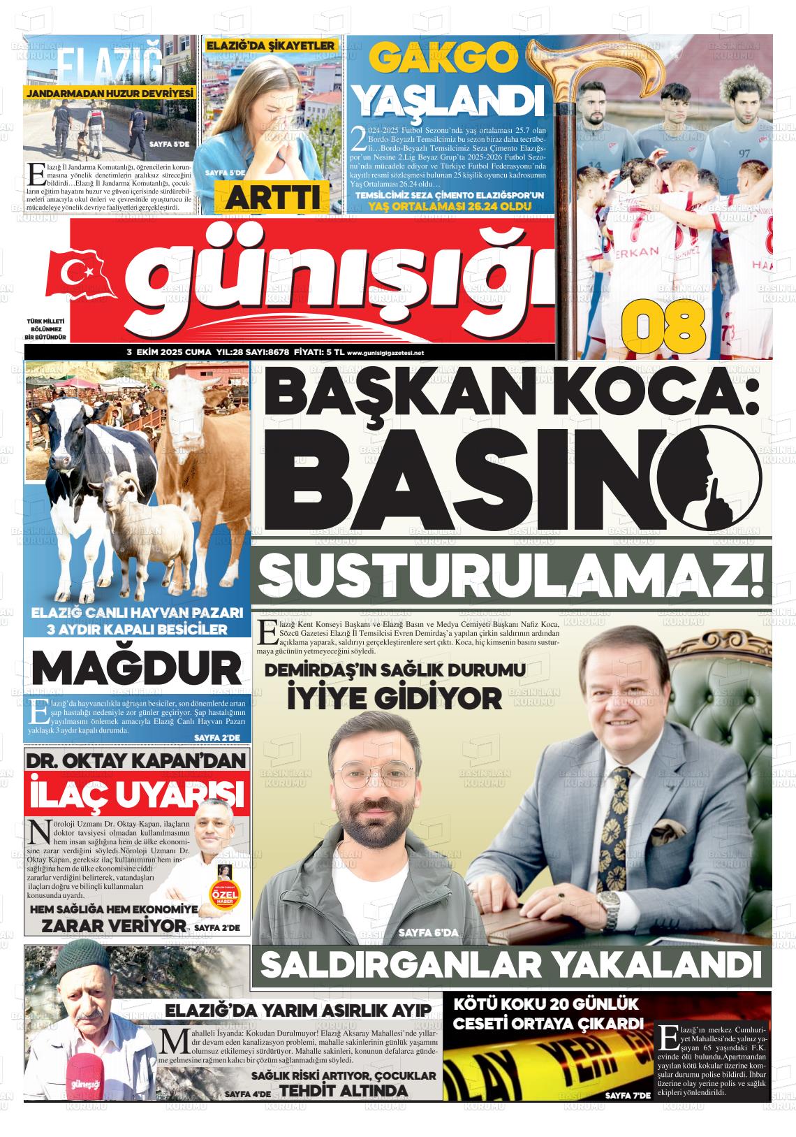 Elazığ Yerel Gazeteleri 09 Ocak 2026, Cuma Günü Manşeti