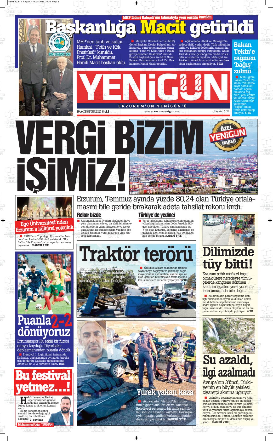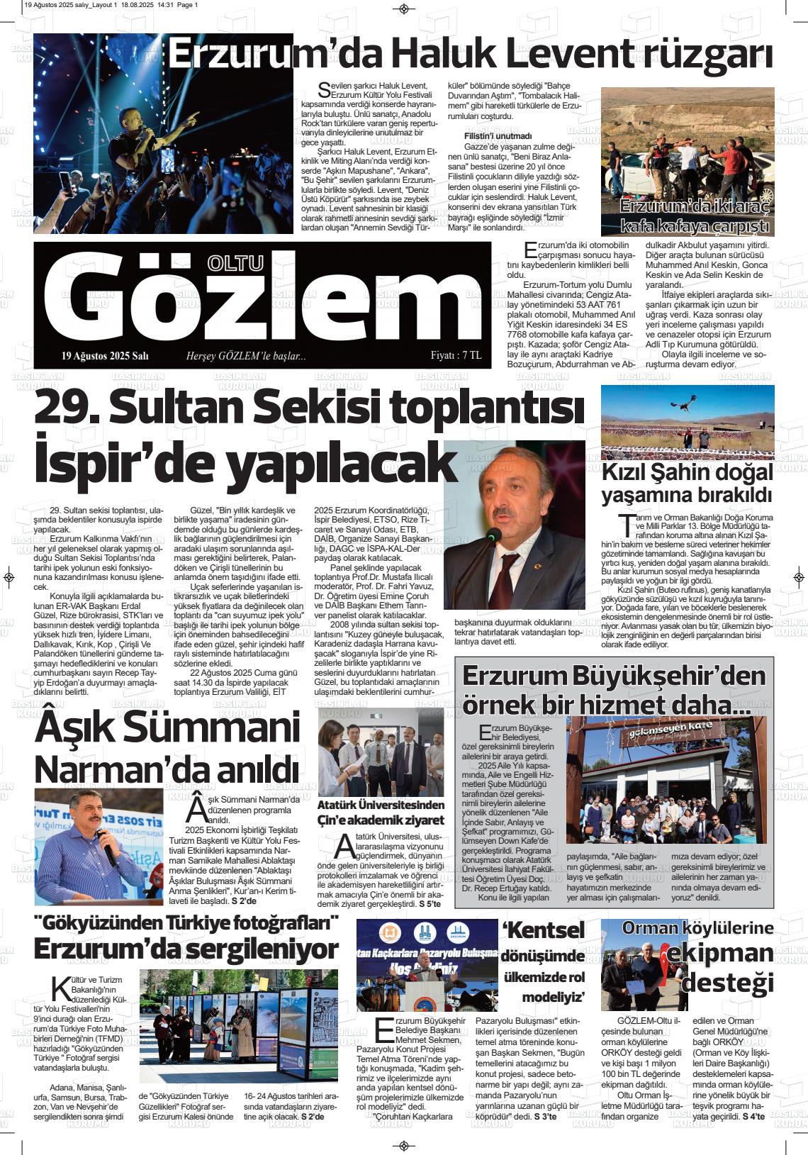 Erzurum Yerel Gazeteleri 03 Mart 2026, Salı Günü Manşeti