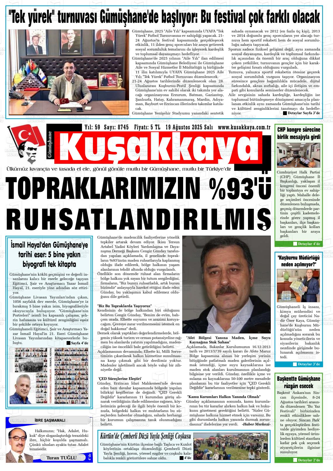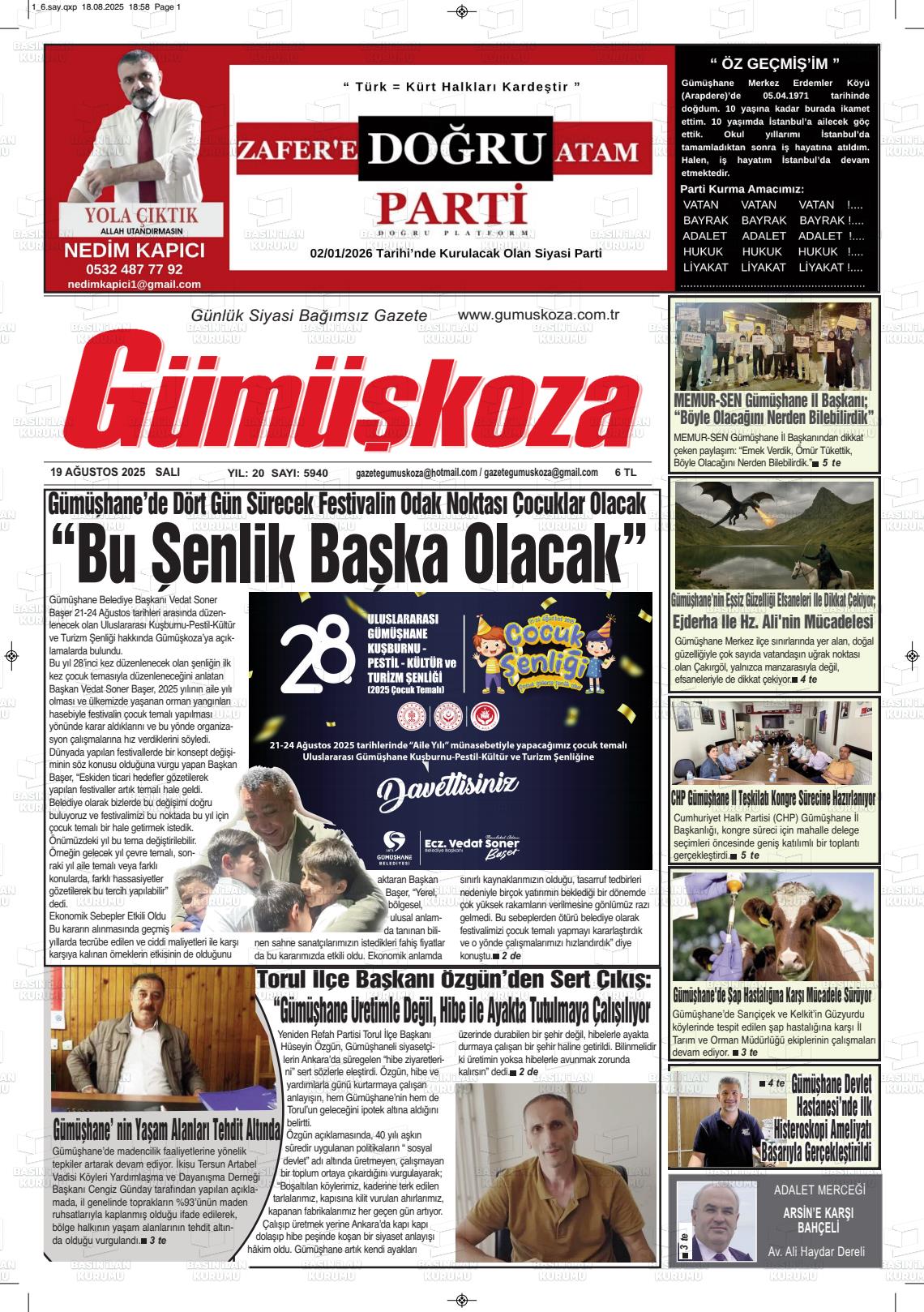Gümüşhane Yerel Gazeteleri 20 Nisan 2026, Pazartesi Günü Manşeti