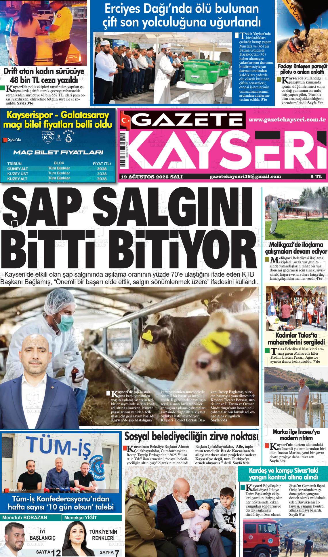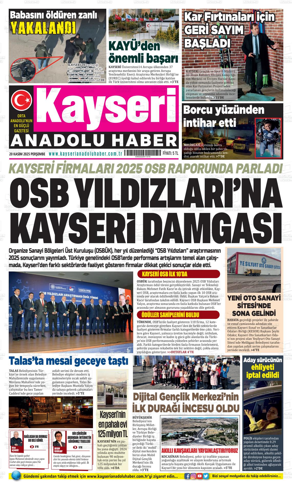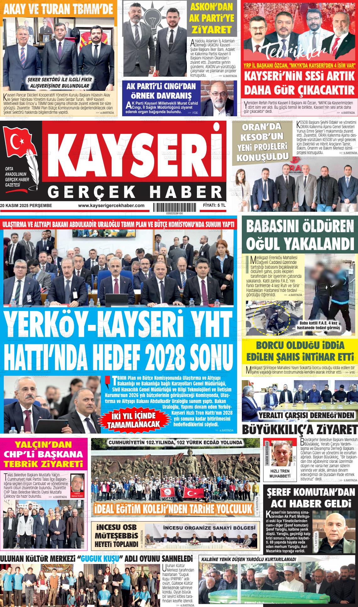 Kayserİ Yerel Gazeteleri 20 Nisan 2026, Pazartesi Günü Manşeti