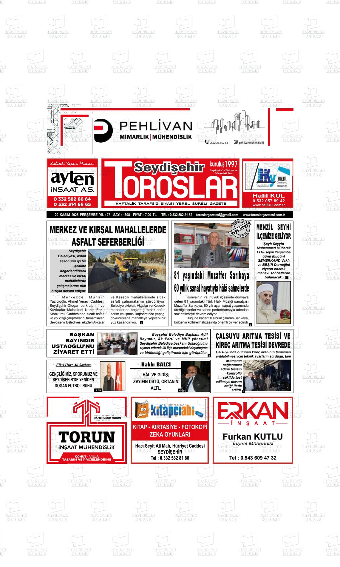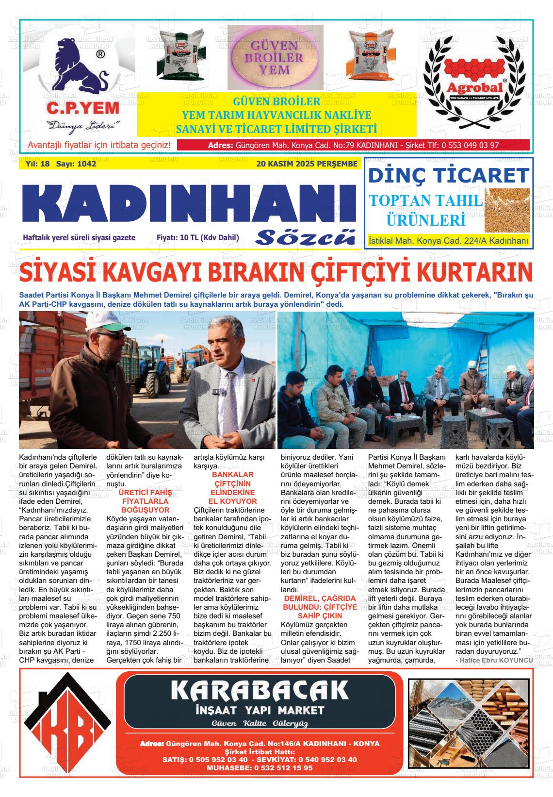 Konya Yerel Gazeteleri 20 Kasım 2025, Perşembe Günü Manşeti