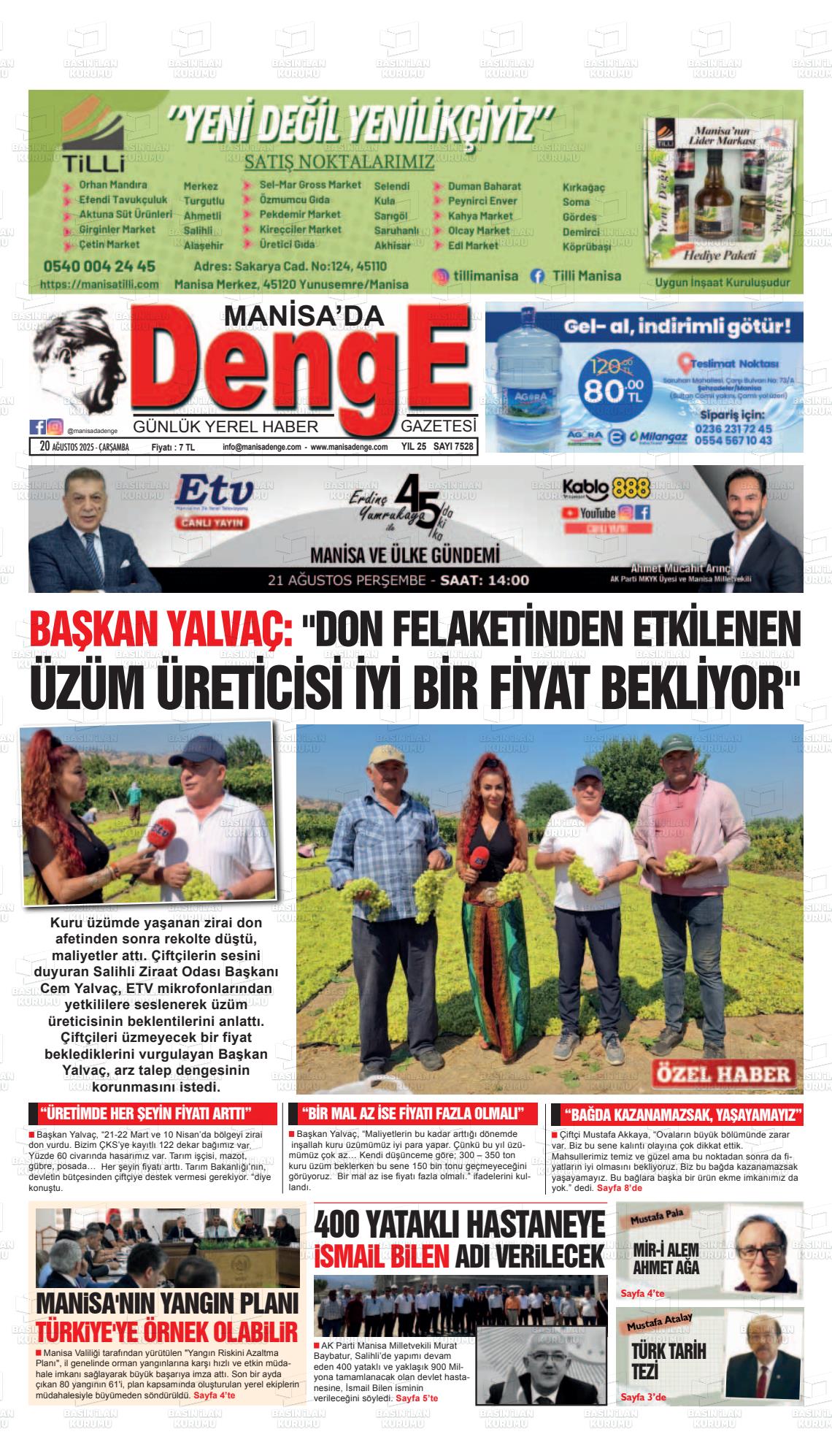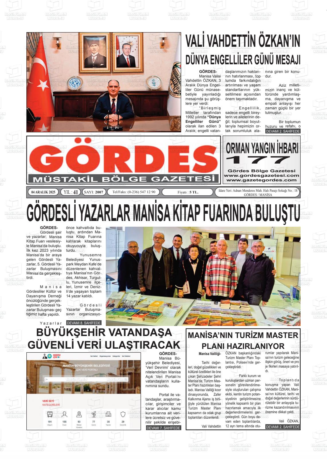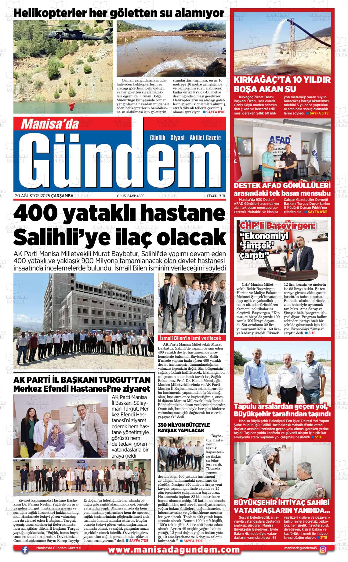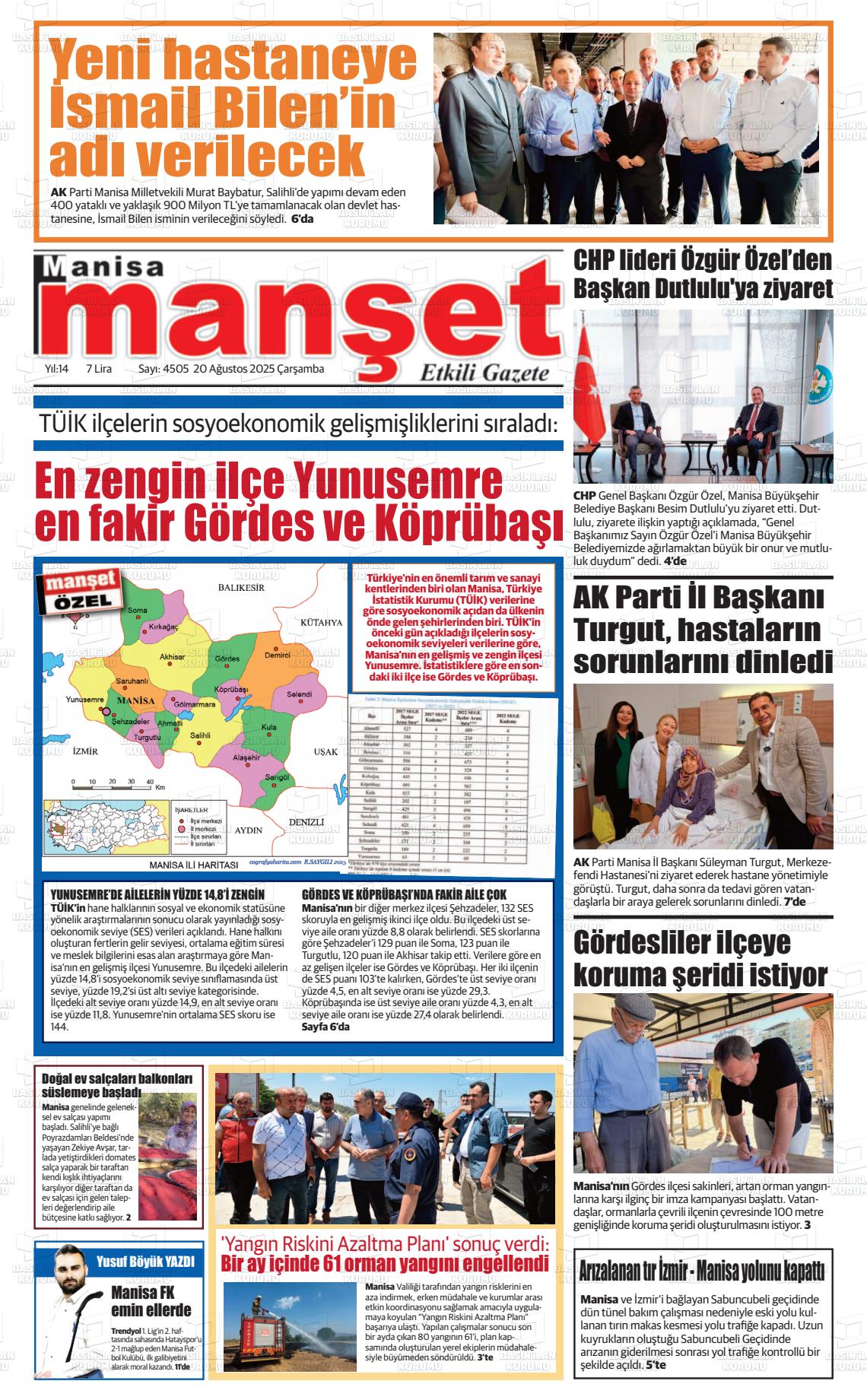 Manİsa Yerel Gazeteleri 29 Ocak 2026, Perşembe Günü Manşeti
