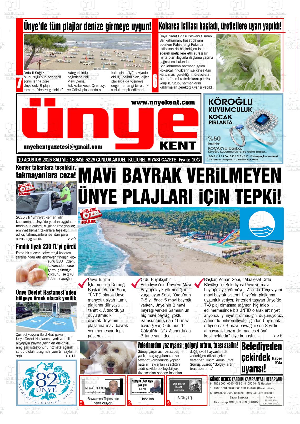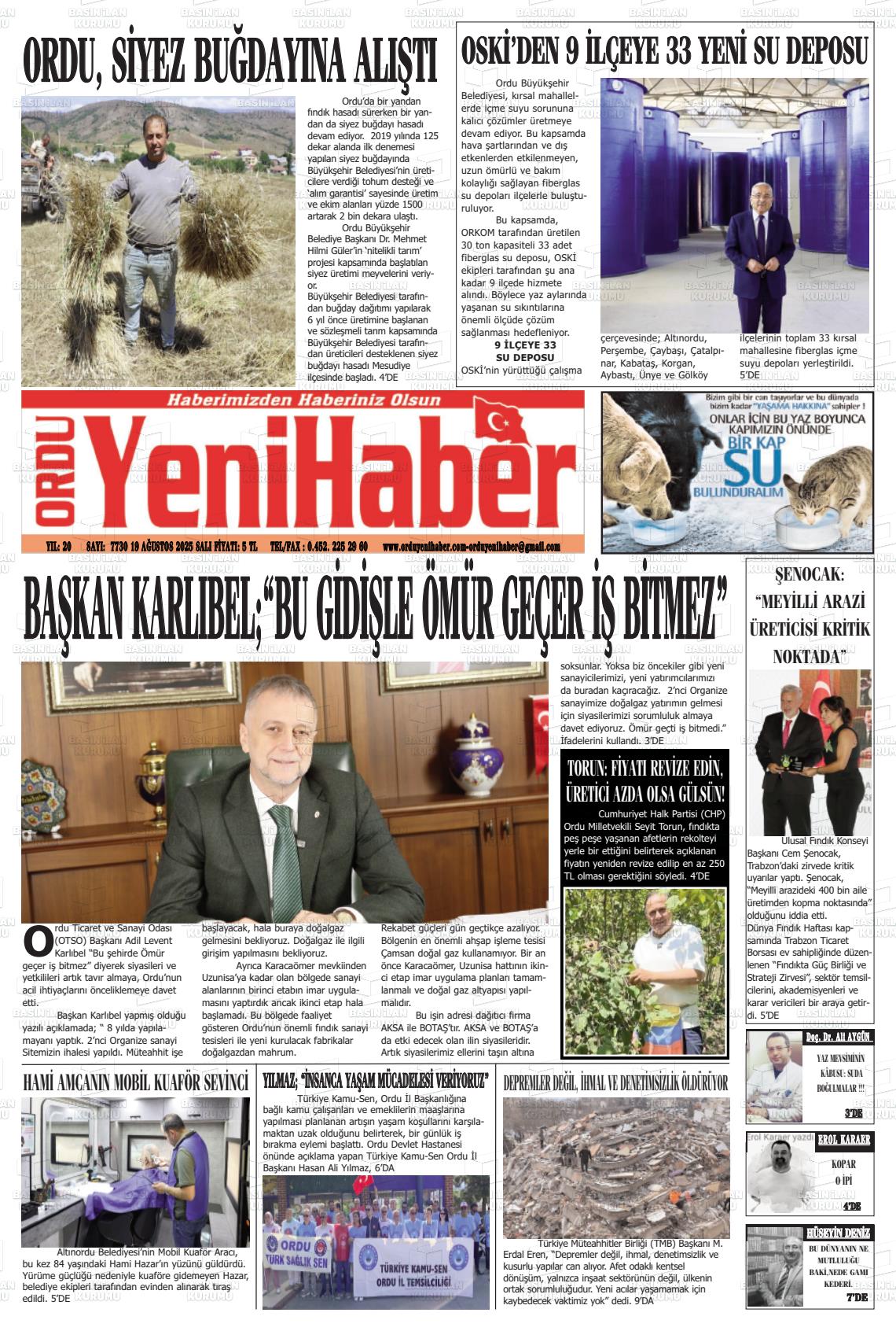Ordu Yerel Gazeteleri 03 Mart 2026, Salı Günü Manşeti