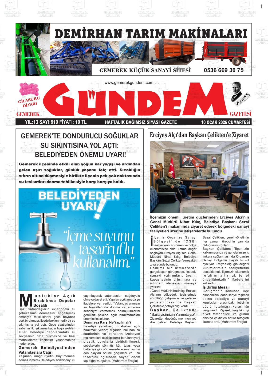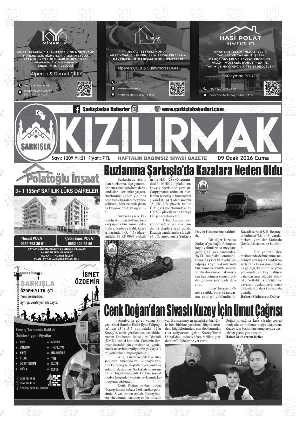 Sİvas Yerel Gazeteleri 10 Ocak 2026, Cumartesi Günü Manşeti