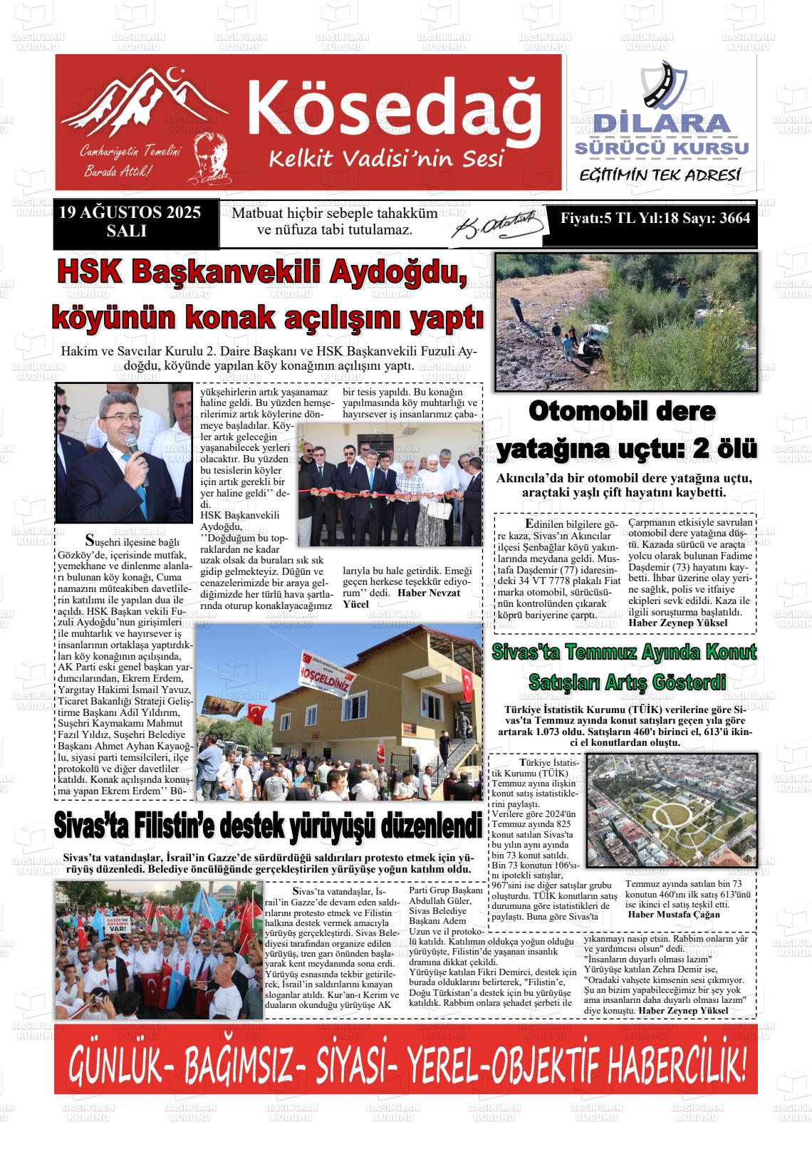 Sİvas Yerel Gazeteleri 21 Nisan 2026, Salı Günü Manşeti