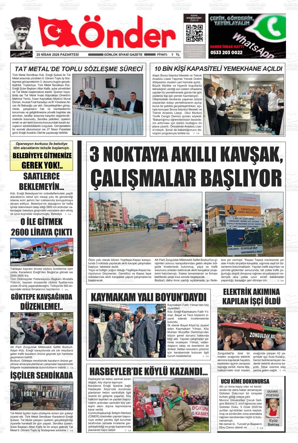 Zonguldak Yerel Gazeteleri 20 Nisan 2026, Pazartesi Günü Manşeti